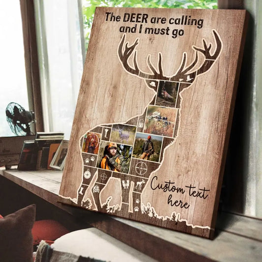 Gifts for Deer Hunters, Personalized Photo Collage Canvas Hunting Gift for Men, Deer Wall Art
