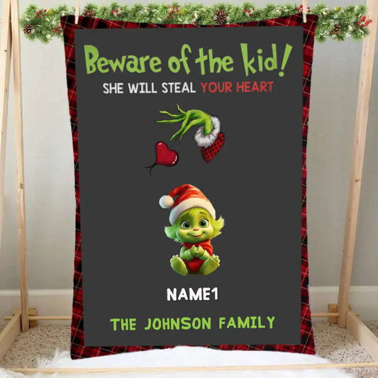 Beware the Child, Gift for the Family, Green Monster Kids - Personalized Custom Blanket, Christmas