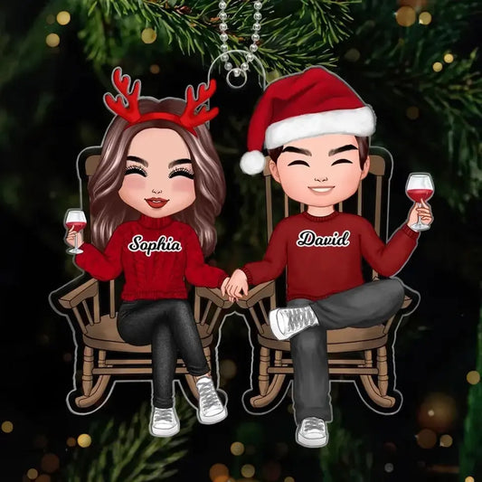 Doll Couple Sitting On Chair Christmas Gift For Him For Her Personalized Acrylic Ornament