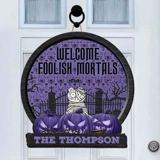 Welcome Foolish Mortals - Personalized Custom Shaped Wood Sign