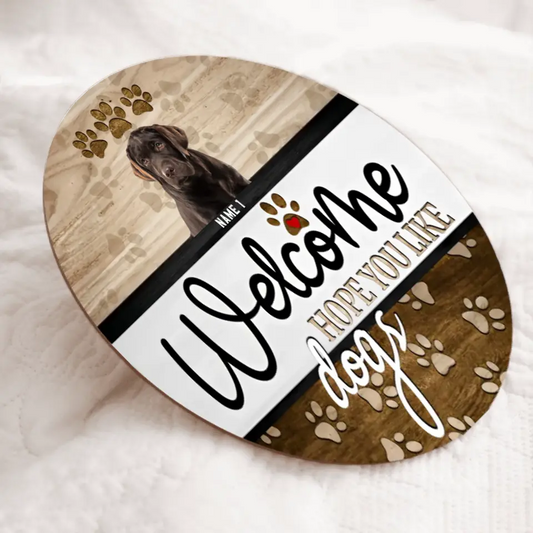 Welcome Hope You Like Dogs, Upload Image, Welcome Door Hanger, Personalized Dog Door Sign