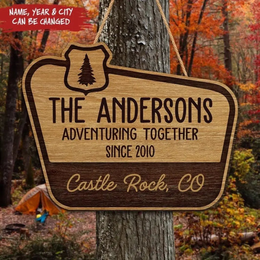 Adventuring Together - Personalized Door Sign, Gift For Camping