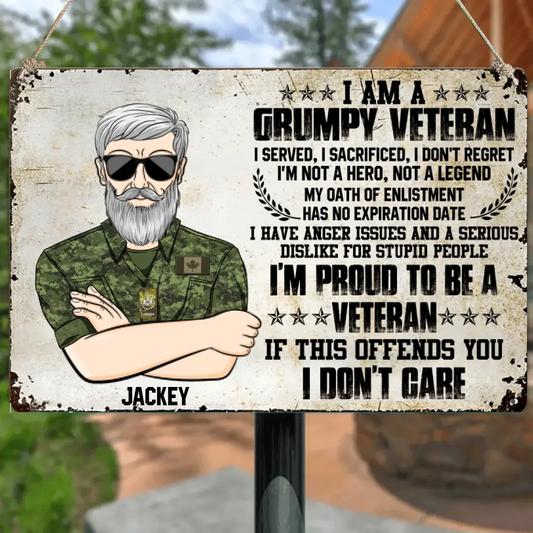 Personalized Grumpy Canadian Veterans Metal Sign Printed