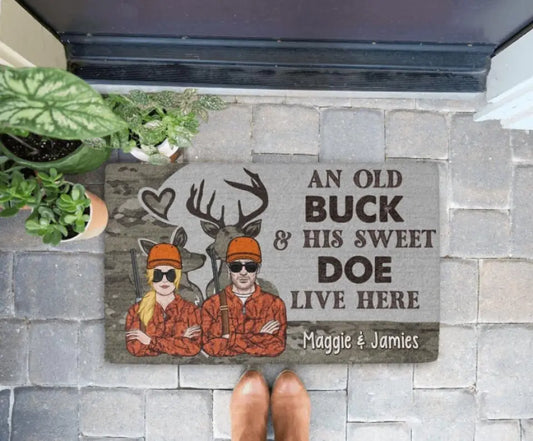 An Old Buck and His Sweet Doe - Personalized Gifts Custom Hunting Doormat for Couples, Hunting Lovers