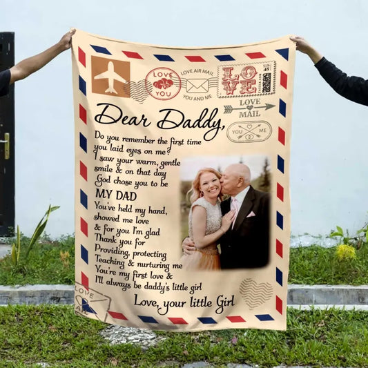 Dear Daddy Letter Blanket From Daughter, Father’s Day Gift From Daughter, Personalised Photo Presents For Dad