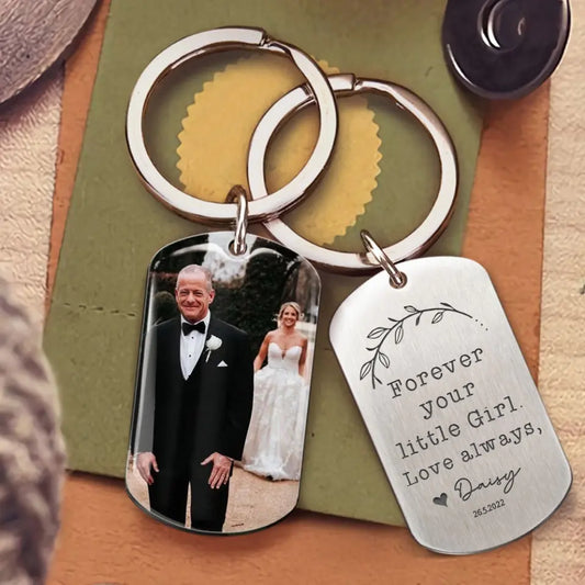 Forever Your Little Girl Dad Photo Metal Keychain, Gift For Dad