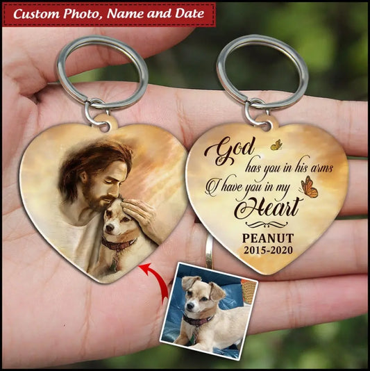 Memorial Gift Upload Photo God Has You In His Arms Personalized Wooden 2sided Keychain