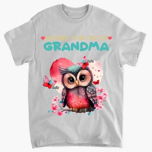 Personalized apparel "Blessed to be called Grandma Owl Butterfly" with child's name printed on it