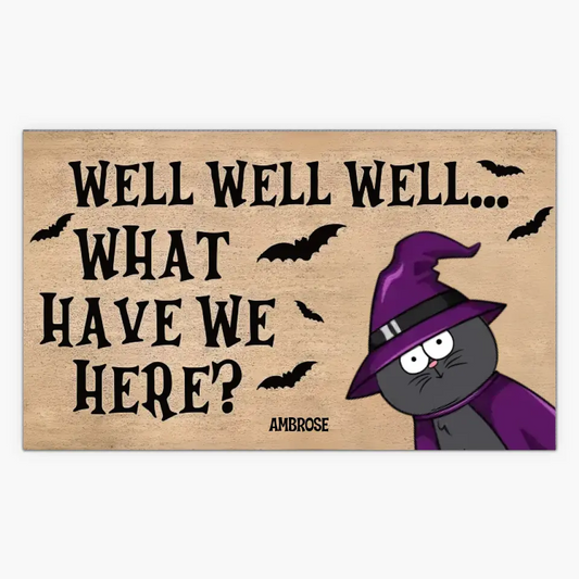Personalized Custom Doormat - Halloween Gift For Cat Lover, Cat Mom, Cat Dad - Well What Have We Here