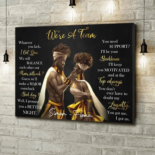Custom Personalized Black Couple Canvas - Gift Idea For Couple/ Mother's Day Gift For Wife From Husband - We're A Team