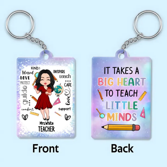 It Takes A Big Heart To Teach Little Minds Teacher Counselor Educator Typography Doll Personalized Acrylic Keychain