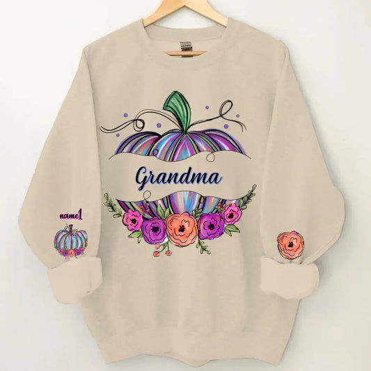 Grandma Pumpkin Flowers Personalized Sweatshirt Fall Gift For Granny