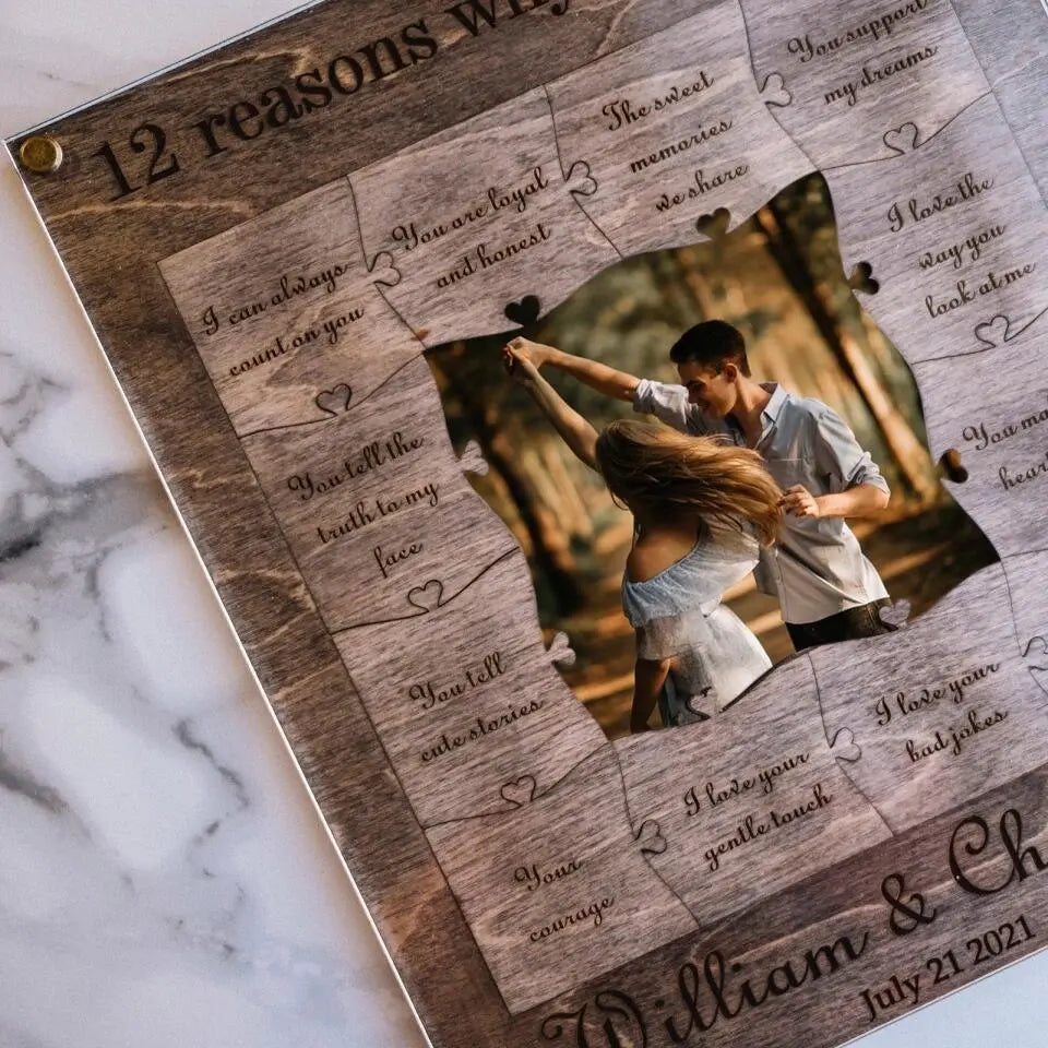 12 Reasons Why I Love You - Personalized Wooden Puzzle Piece Collage Frame, Birthday Gift for Her, Anniversary Gift