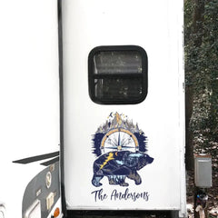 Bear And Mountains - Personalized Decal, Camping Gift For Camping Lovers