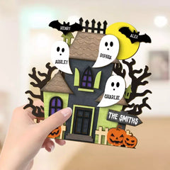 Grandma Family Haunted House Boo Flying Personalized Standing Wooden Plaque, Halloween Decor