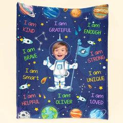 Kid Affirmations I Am Kind Smart Loved Astronaut - Personalized Photo Blanket