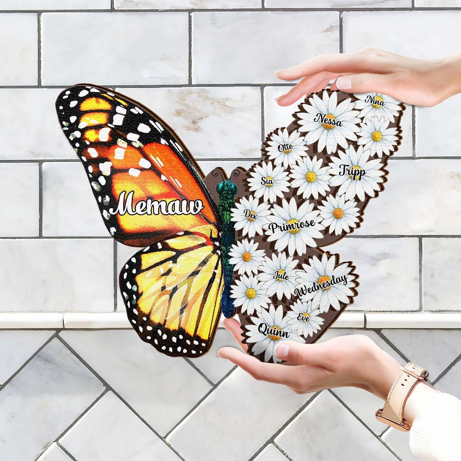 Nana, Mom, Auntie Family Butterfly - Birthday, Home Decor, Loving Gift For Mother, Grandma, Grandmother - Personalized Custom Shaped Wood Sign
