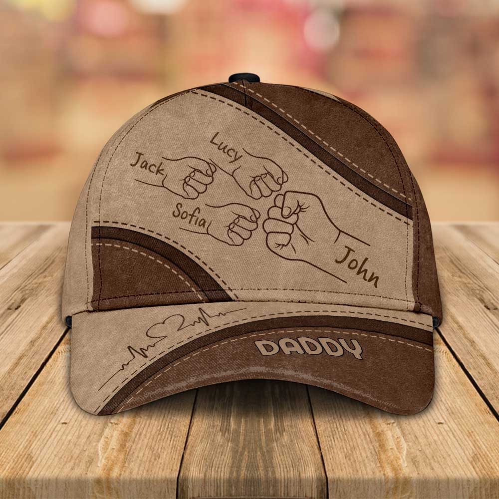 Outline Fist Bump Daddy Grandpa Personalized Classic Cap, Father's Day Gift For Dad, For Grandpa, For Husband