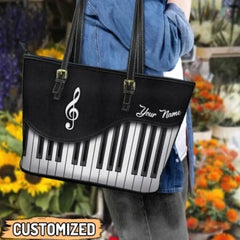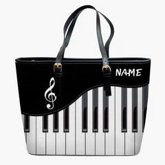 Personalized Piano Keyboard Leather Tote Bag with Custom Name - Perfect Gift for Music Lovers