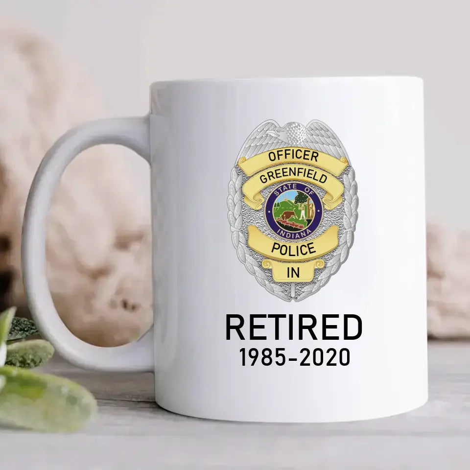 Retired US Police Badge Black Mug - Perfect Gift for Retired Officers