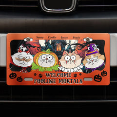 Welcome Foolish Mortals Cat Halloween - Personalized License Plate